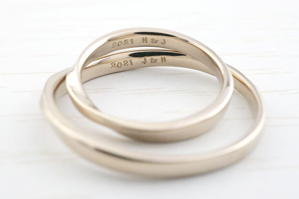 おふたりとも形状にこだわってそれぞれの指輪デザインをお選びいただきました。
