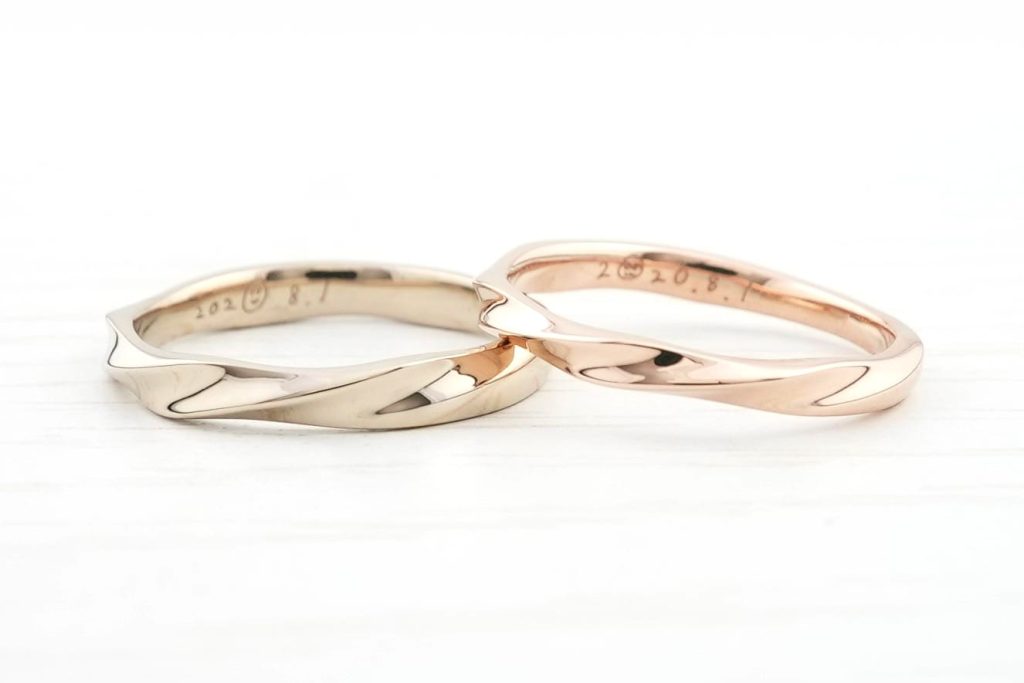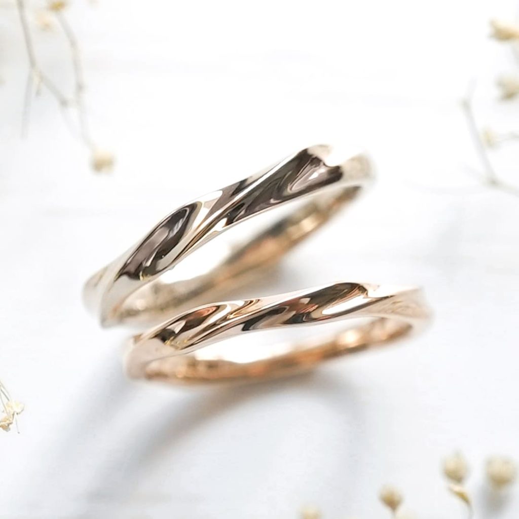 K18シャンパンゴールドとピンクゴールドで作製した結婚指輪ウィング。
