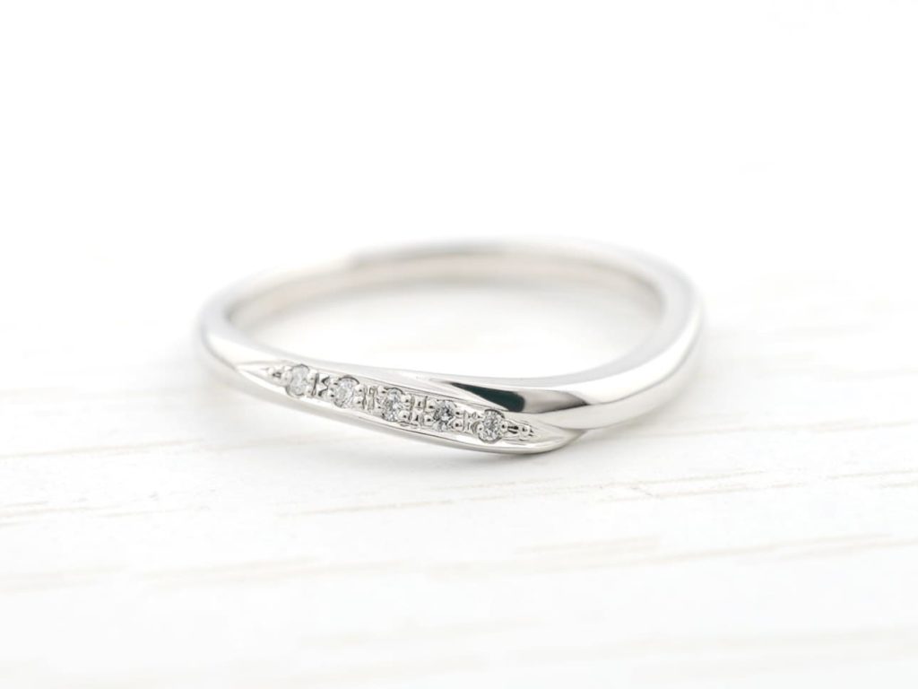 奥様リングにはダイヤモンドが連に5石留まっています。