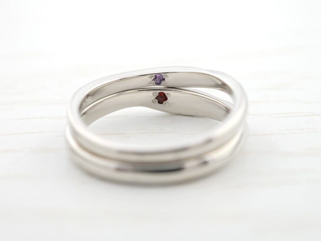 内側にはお互いの誕生石であるアメジストとガーネットを留めています。