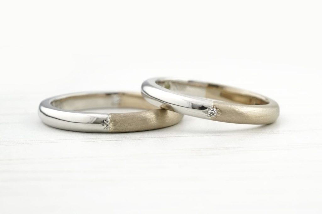 画像の素材は、おふたつともプラチナとK18シャンパンゴールド。