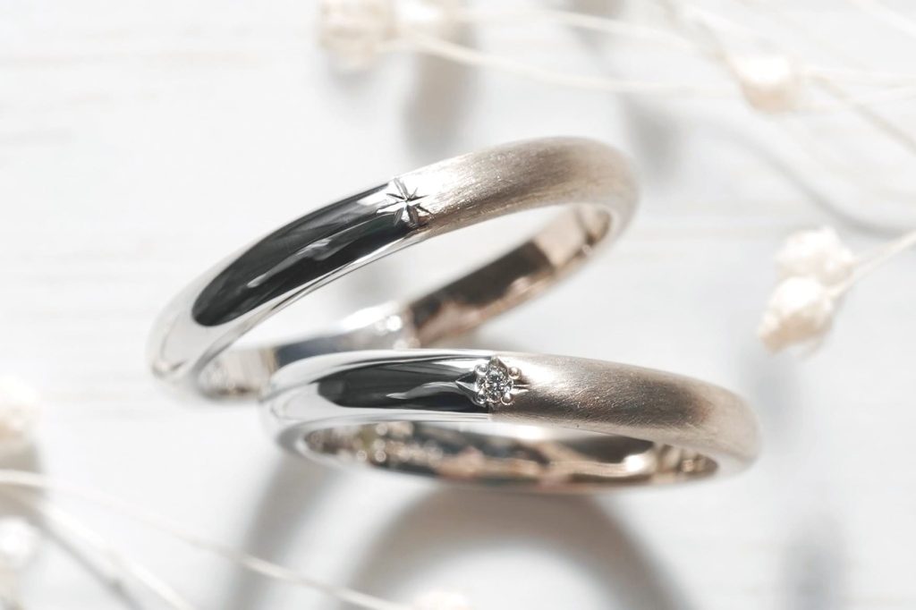 レディースリング(画像右)薄いつや消し加工を施してあります。