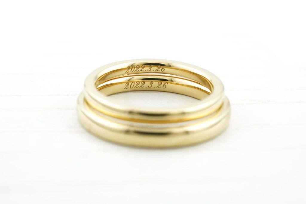 指輪の内側にはおふたりの記念日がレーザーにて刻印されています。
