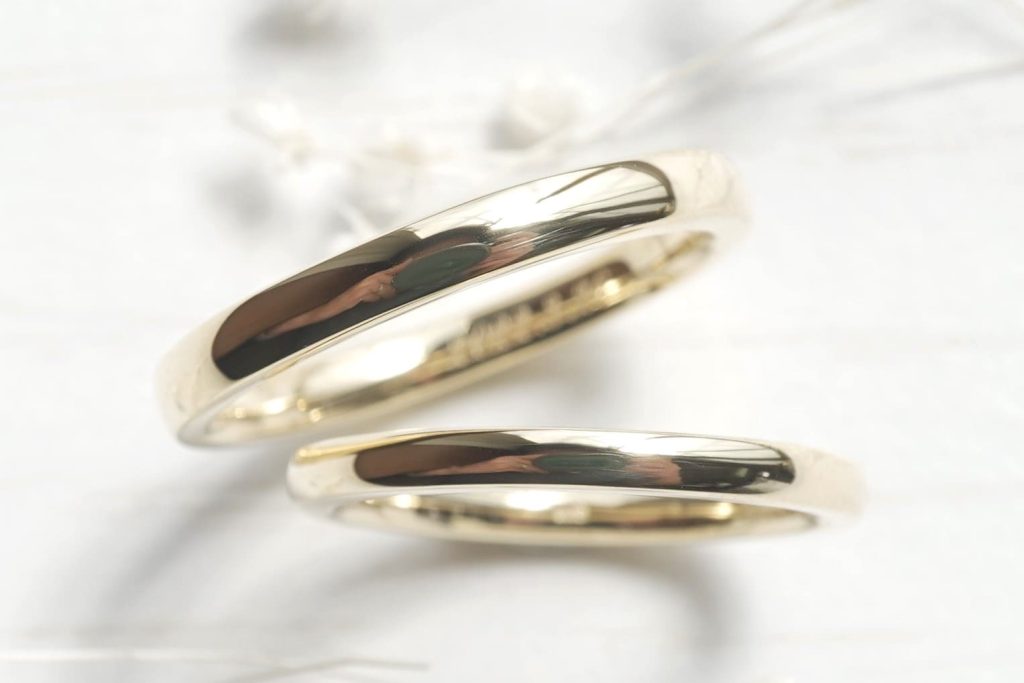 全体をポリッシュ加工し、輝きのある結婚指輪を仕上げさせていただきました。