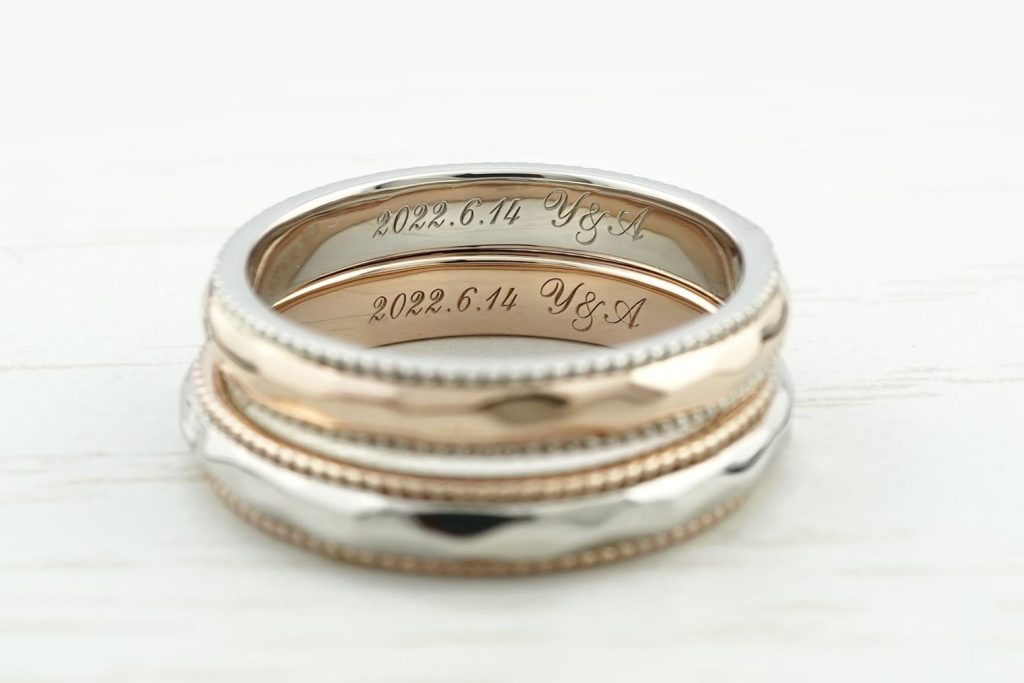 指輪の内側にはおふたりのイニシャルと記念日をレーザーで刻印し、内側にも思いが込められた結婚指輪が完成しました。