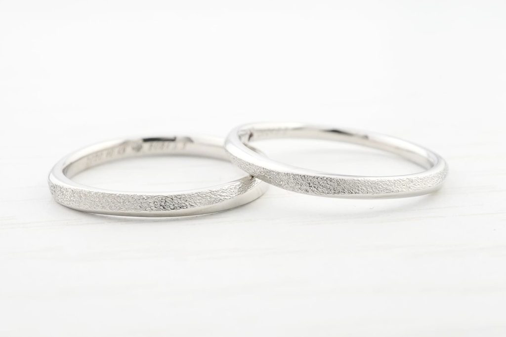 ライン部分にはスターダスト加工を施し、キラキラ光るデザインの結婚指輪が仕上がりました。
