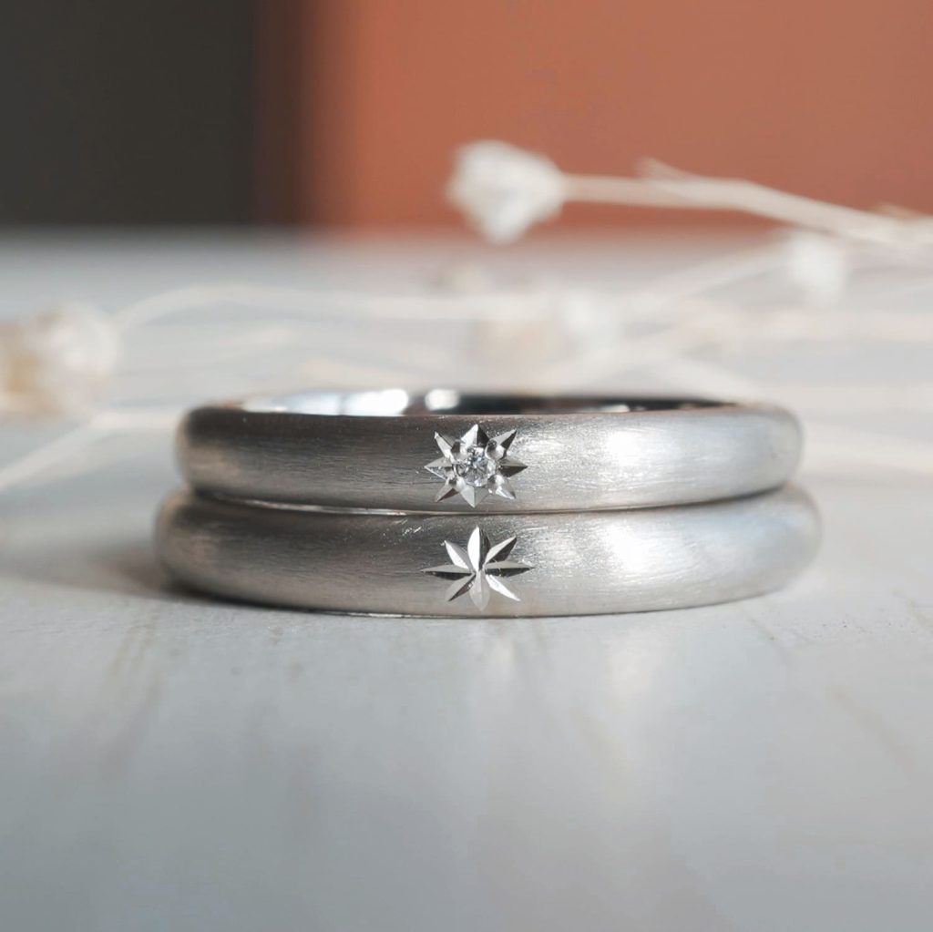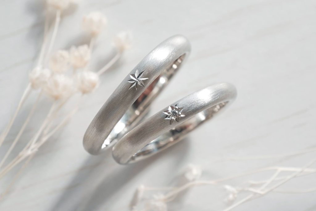 シンプルな甲丸に星彫りを加えた結婚指輪をご紹介します