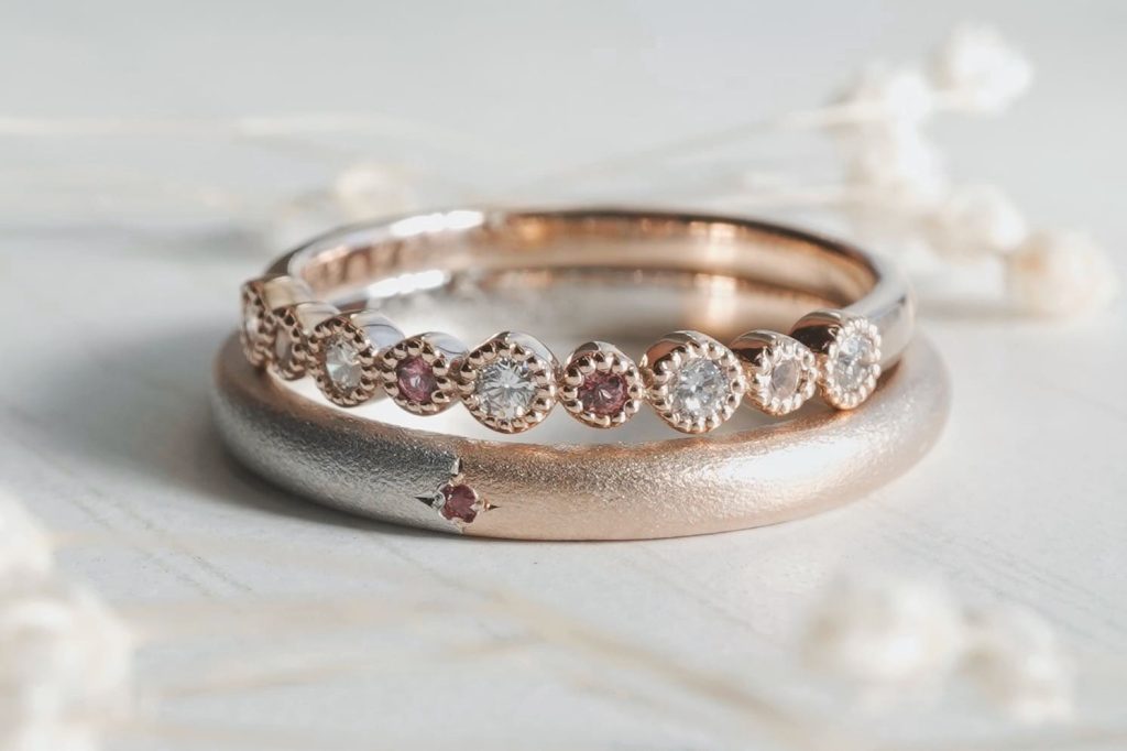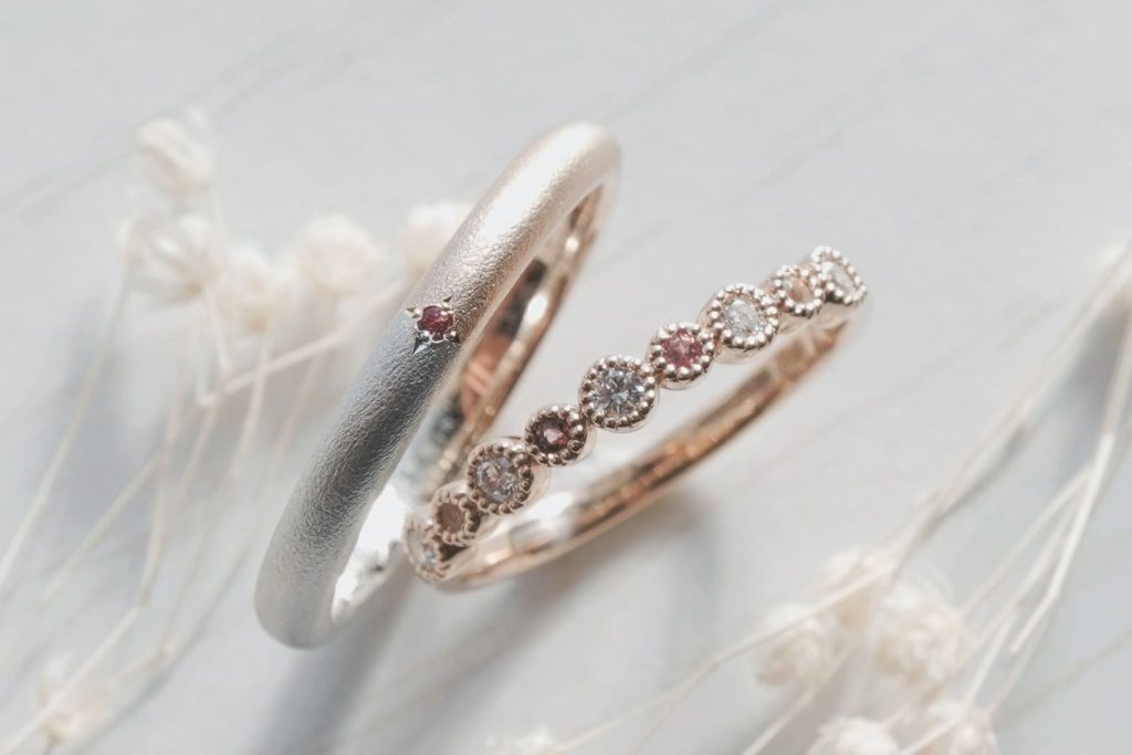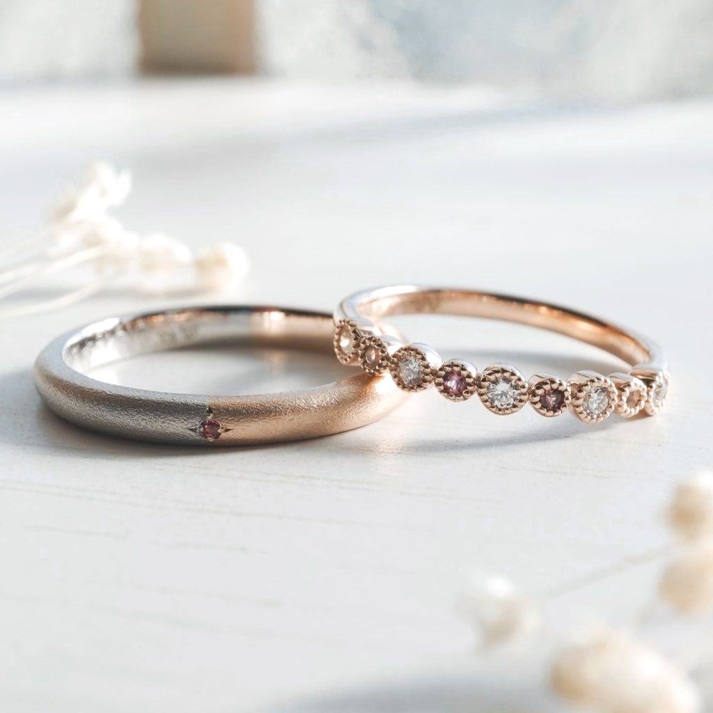 ピンクトルマリンを主体とした結婚指輪をオーダーいただきましたのでご紹介いたします