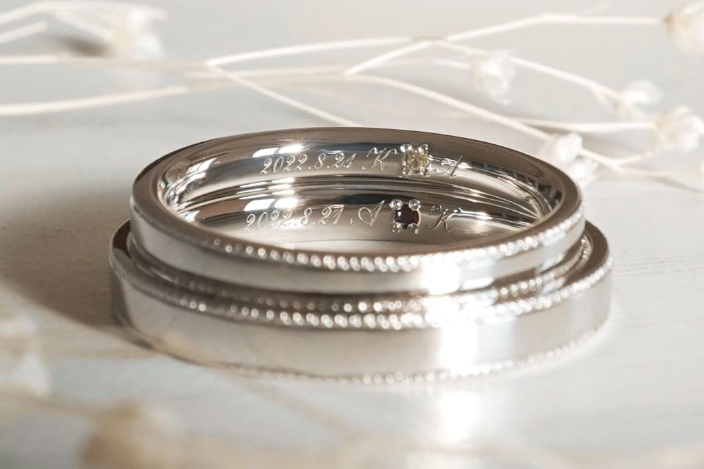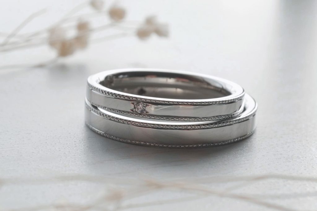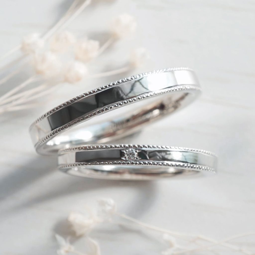 安曇野市からお越しのカップル様にミルグレインが特徴的な結婚指輪をオーダーいただきましたのでご紹介します