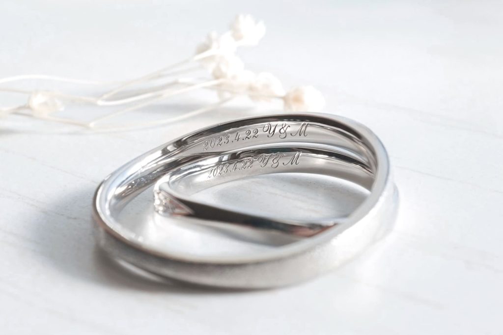 内側にはおふたりの記念日とイニシャルがレーザー刻印にて刻まれています。