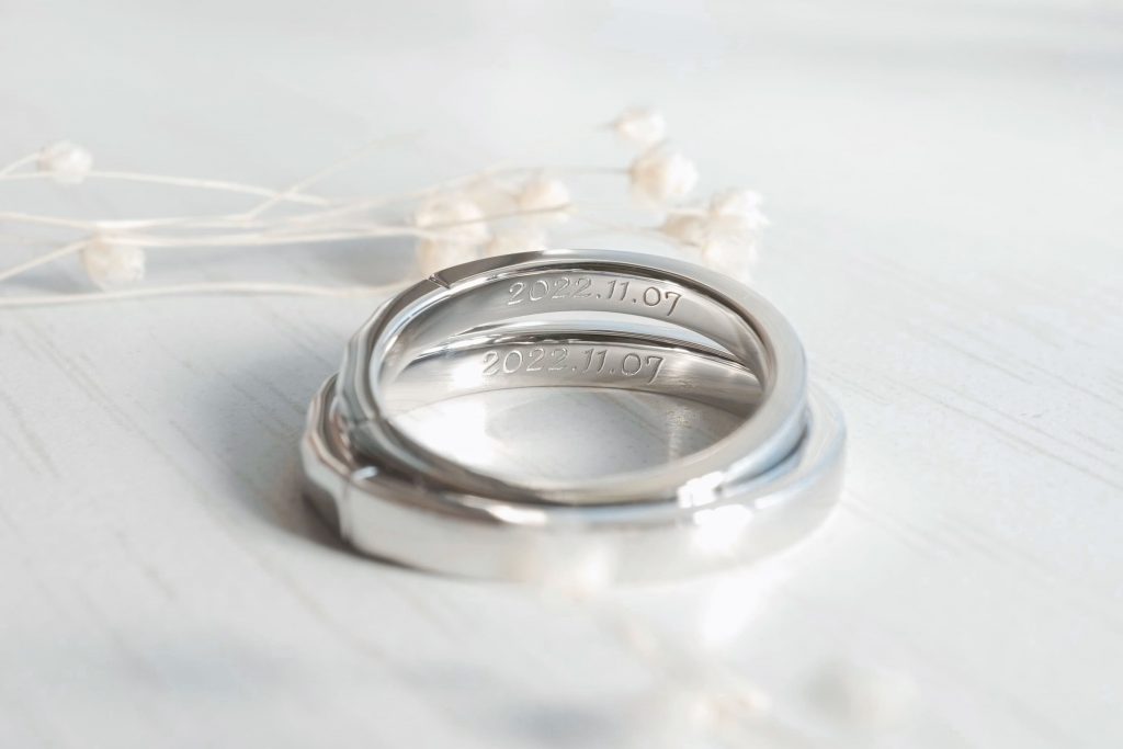 指輪の内側には、おふたりの大切な記念日がレーザー刻印されています。