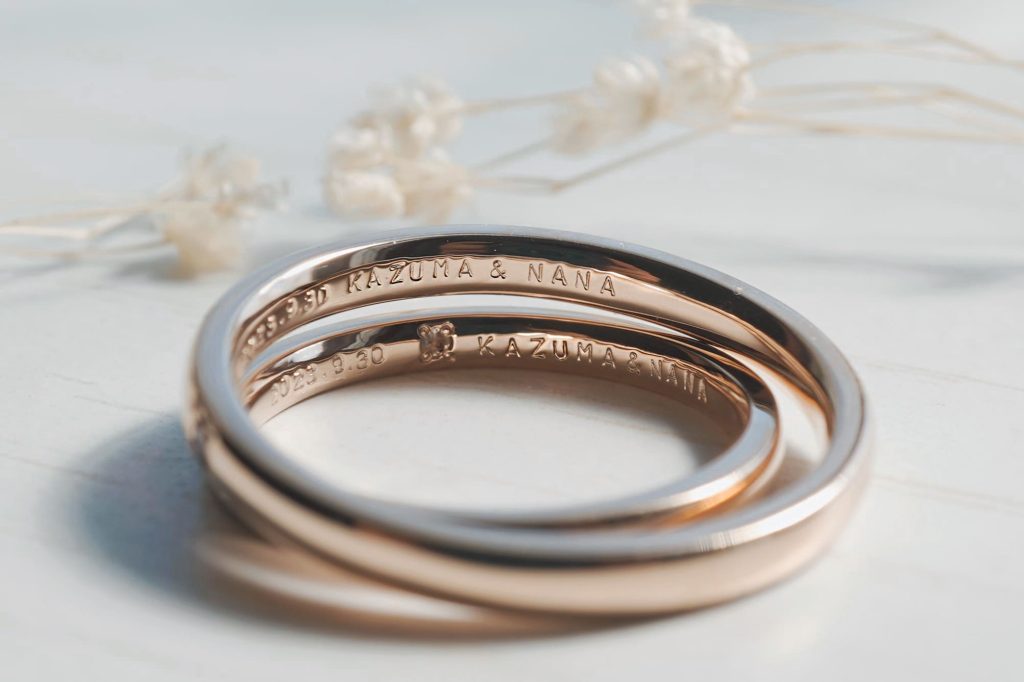 内側はおふたりの記念日とお名前を打刻にて刻印されています。