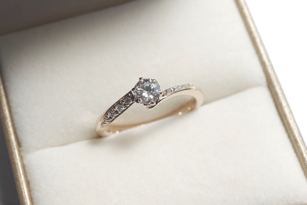ピンクゴールドの素材の婚約指輪をオーダーいただきましたのでご紹介いたします。