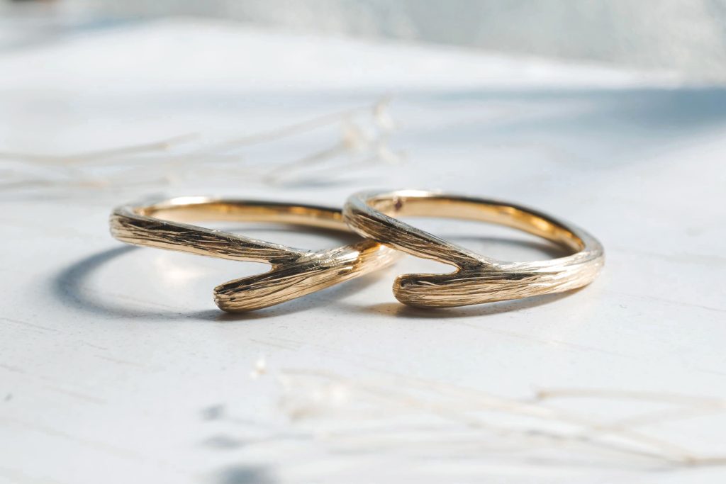 木目模様で仕上げたブライダルリング