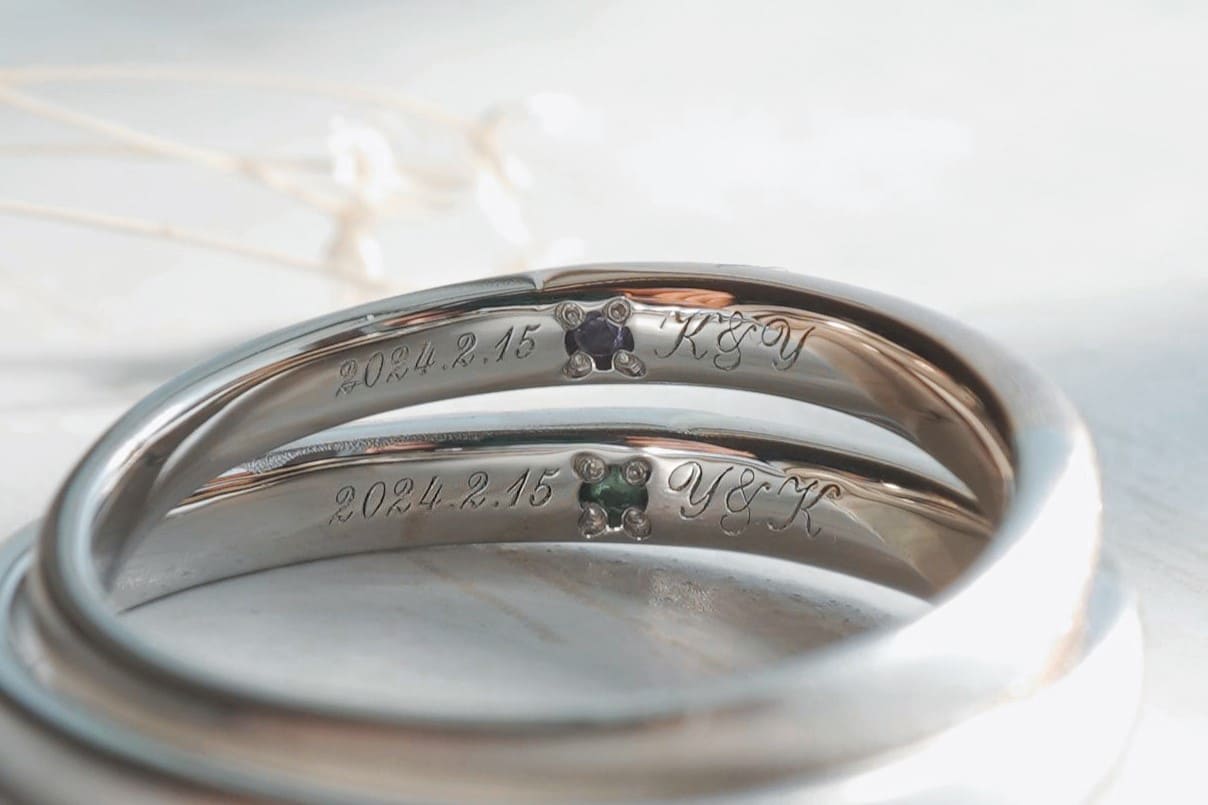 内文字にはおふたりの記念日とイニシャルをレーザーで刻印しています。