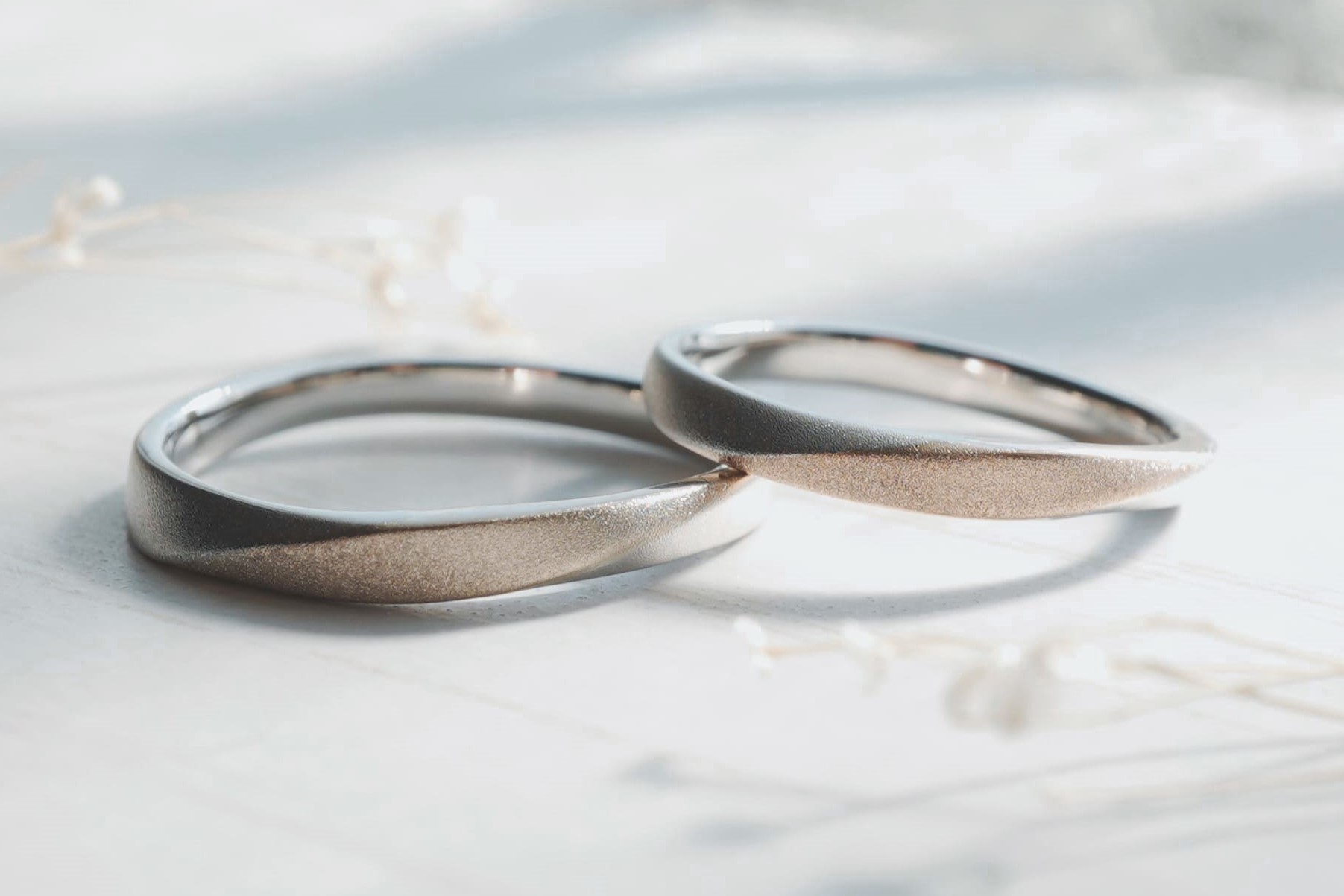 メンズリングは幅2.4mm、レディースリングは幅2.2mmで作製。