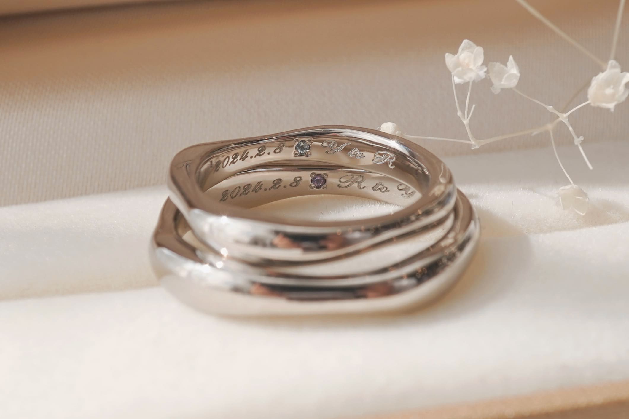 内文字には、おふたりの記念日とイニシャルを刻印しております。