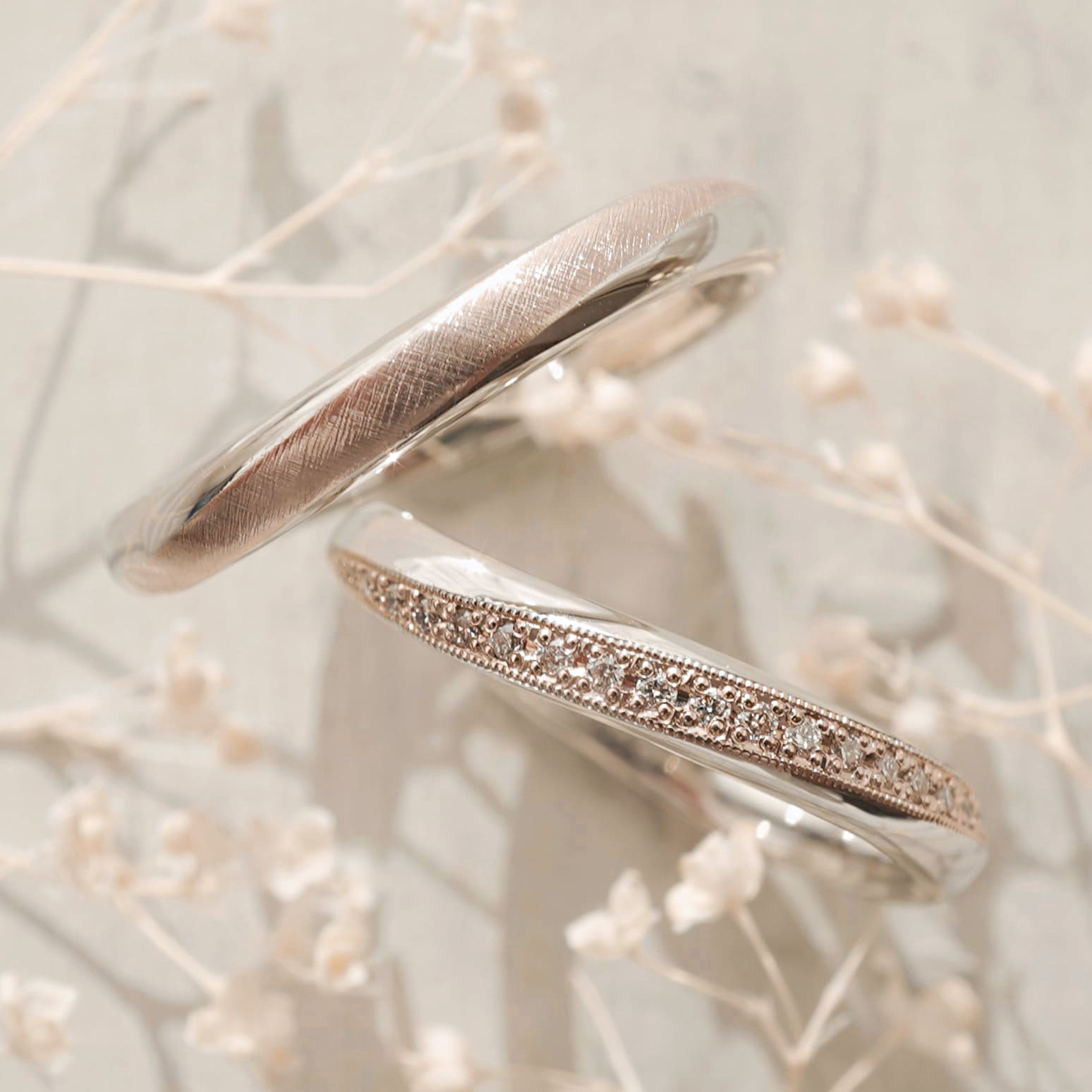 Men’sリングは、Pt900とK18ラベンダーゴールドを使用。