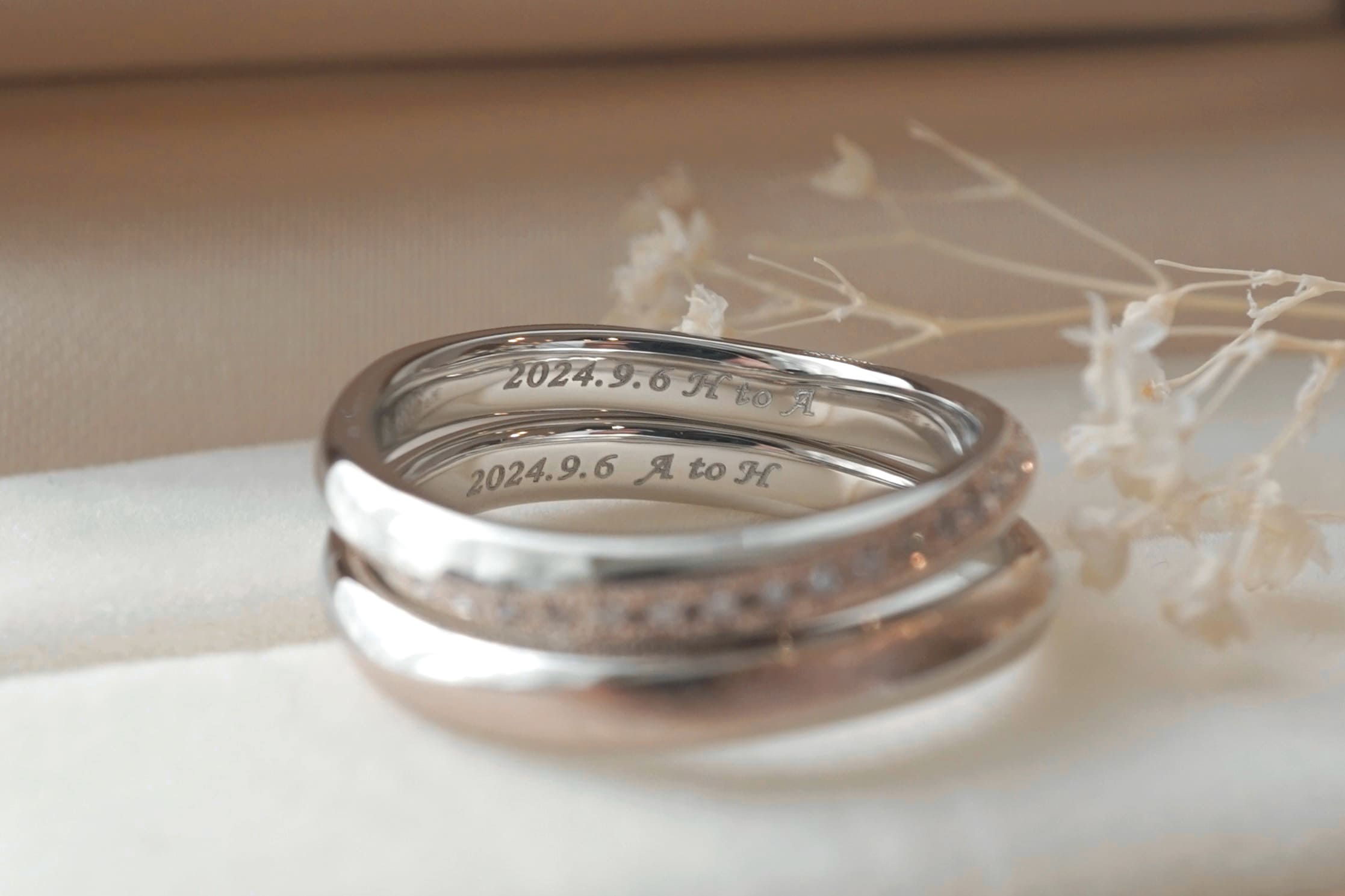 内文字には、おふたりの記念日とイニシャルを刻印しております。