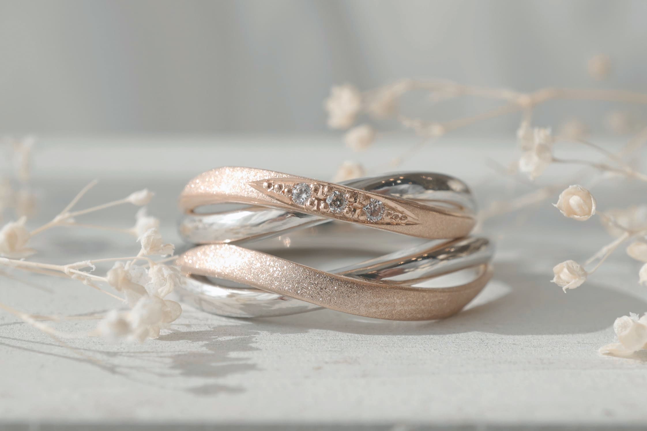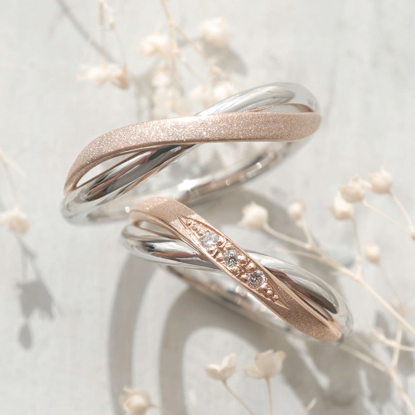 Lady’sリングは、Pt900とK18ローズゴールドを使用。