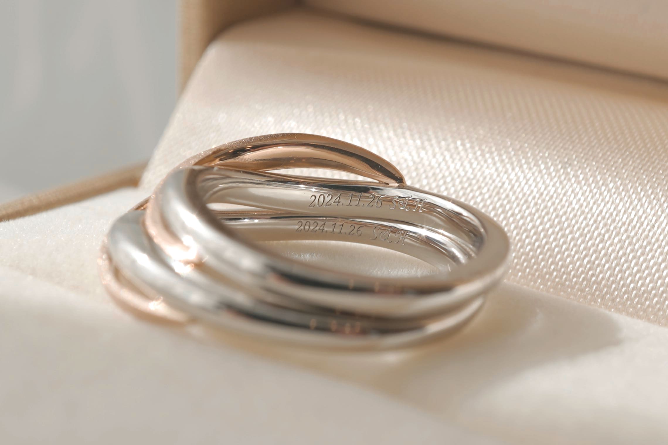 交錯が特徴の結婚指輪をお選びいただきましたのでご紹介いたします。