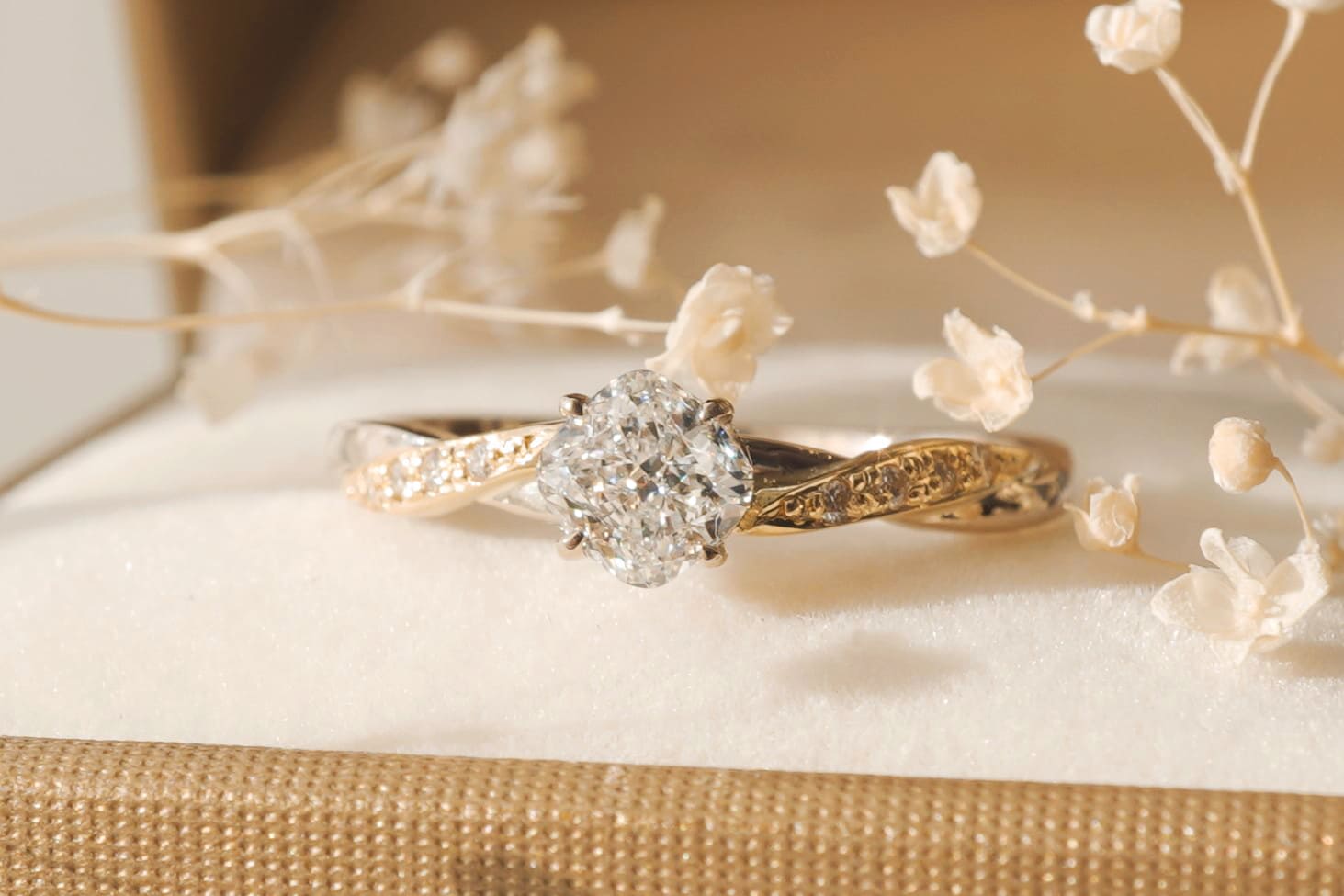 素材はK18イエローゴールドとK18シャンパンゴールドで作製のオーダーメイドの婚約指輪をお選びいただきました。