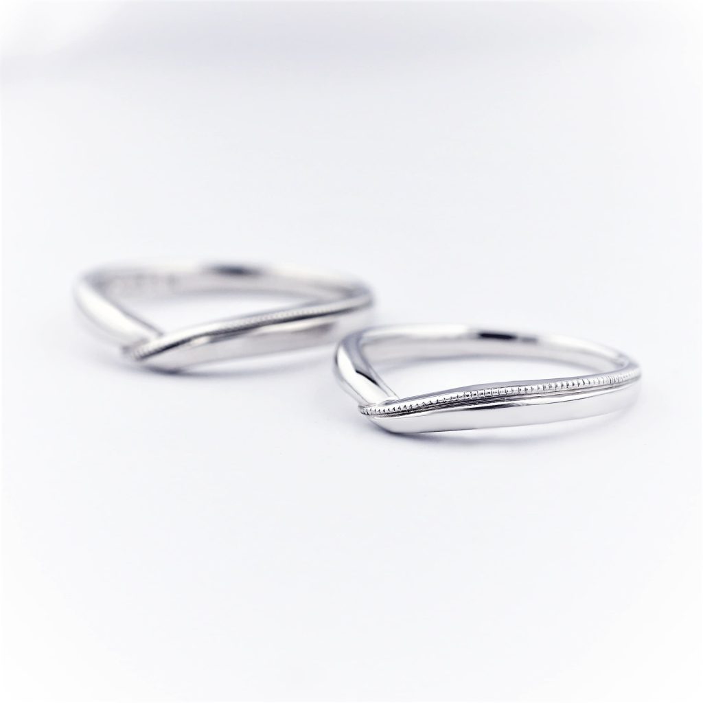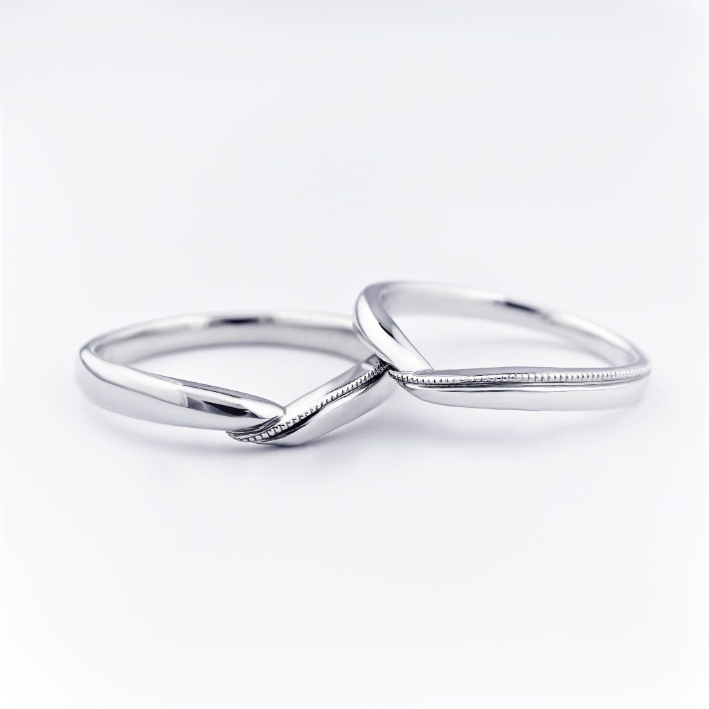 V字の結婚指輪に一部ミル打ちを