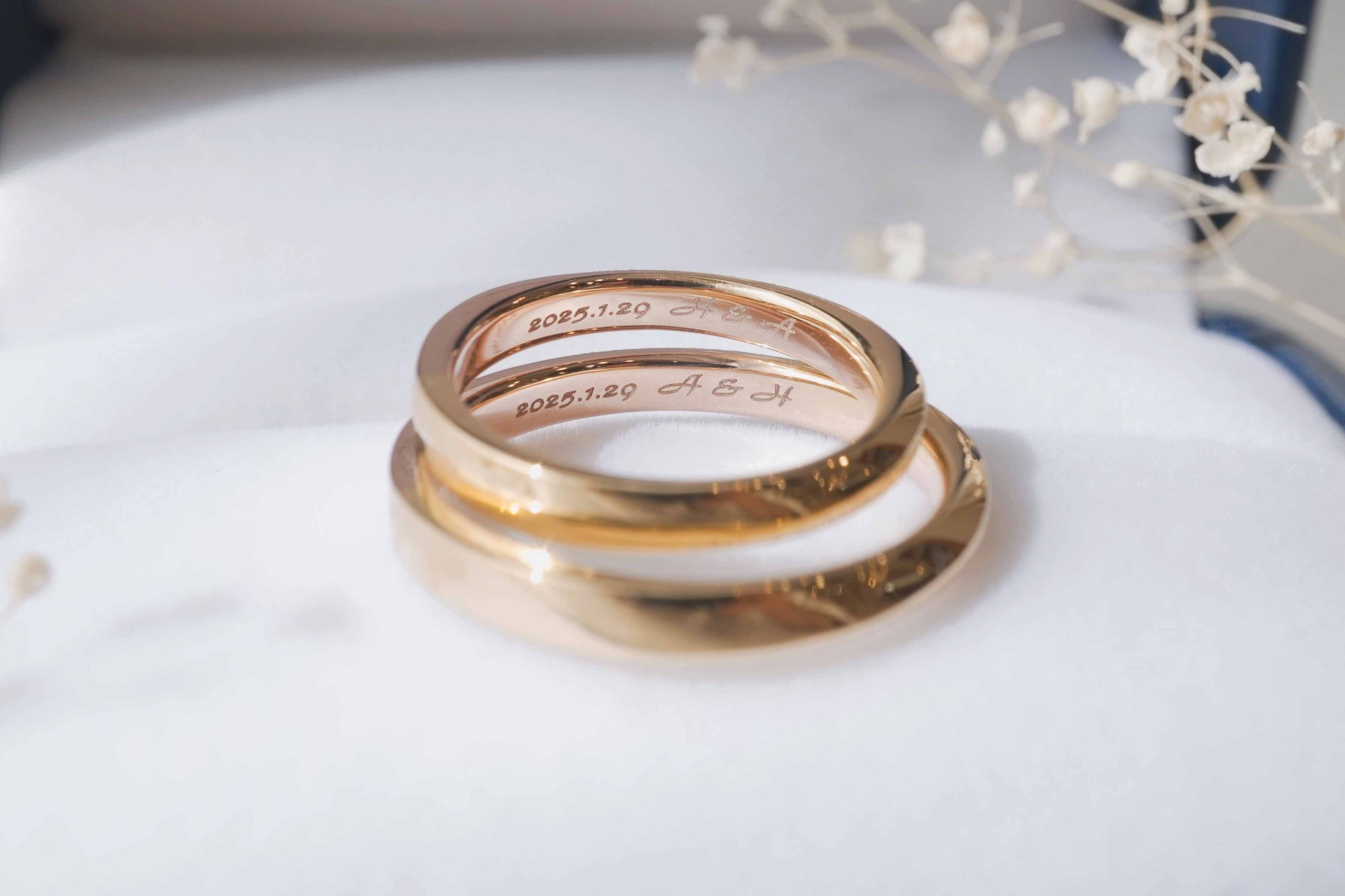 内文字には、おふたりの記念日とイニシャルがレーザーにて刻印されています。
