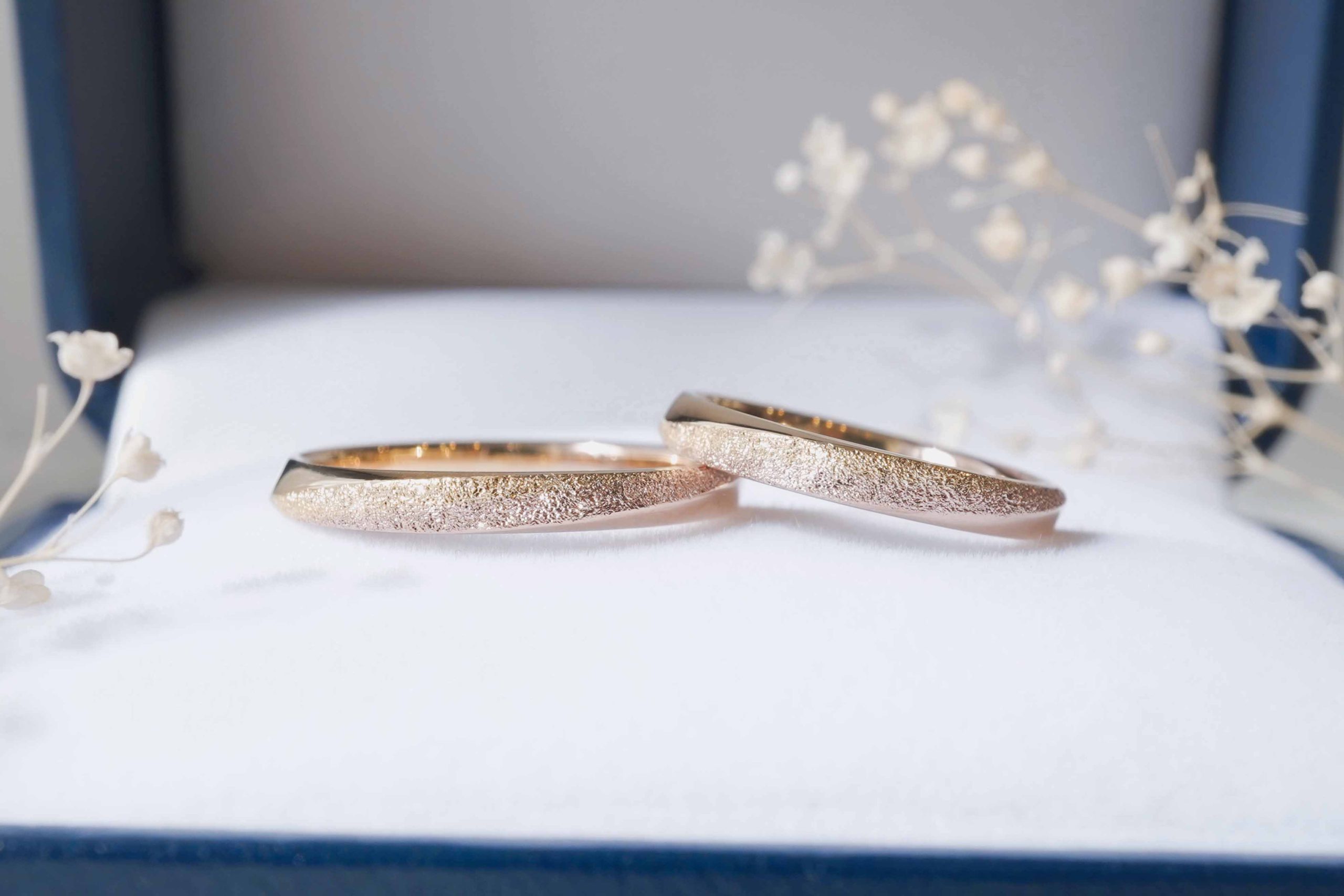 スターダスト加工で仕上げたお揃いの結婚指輪をオーダーいただきましたのでご紹介いたします。