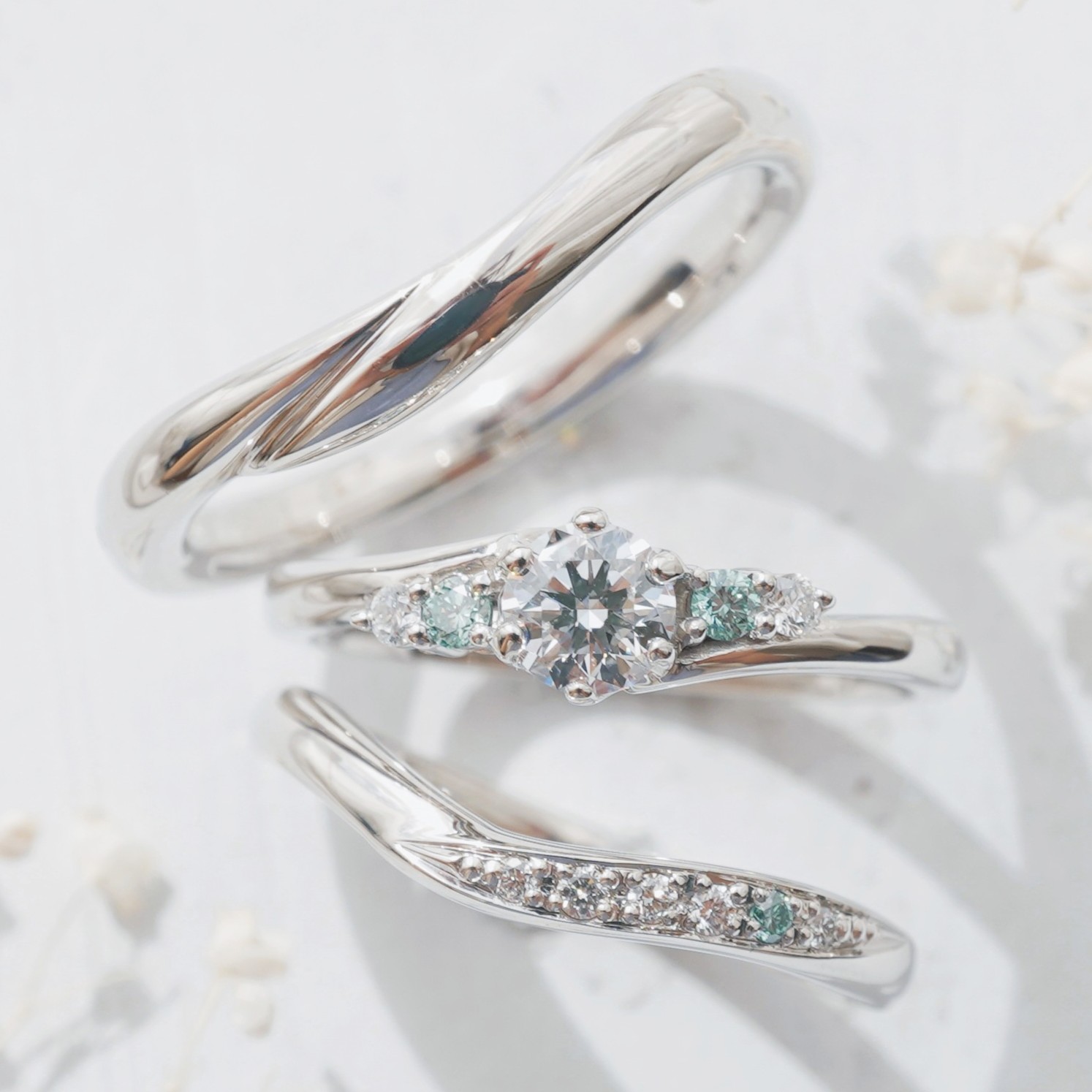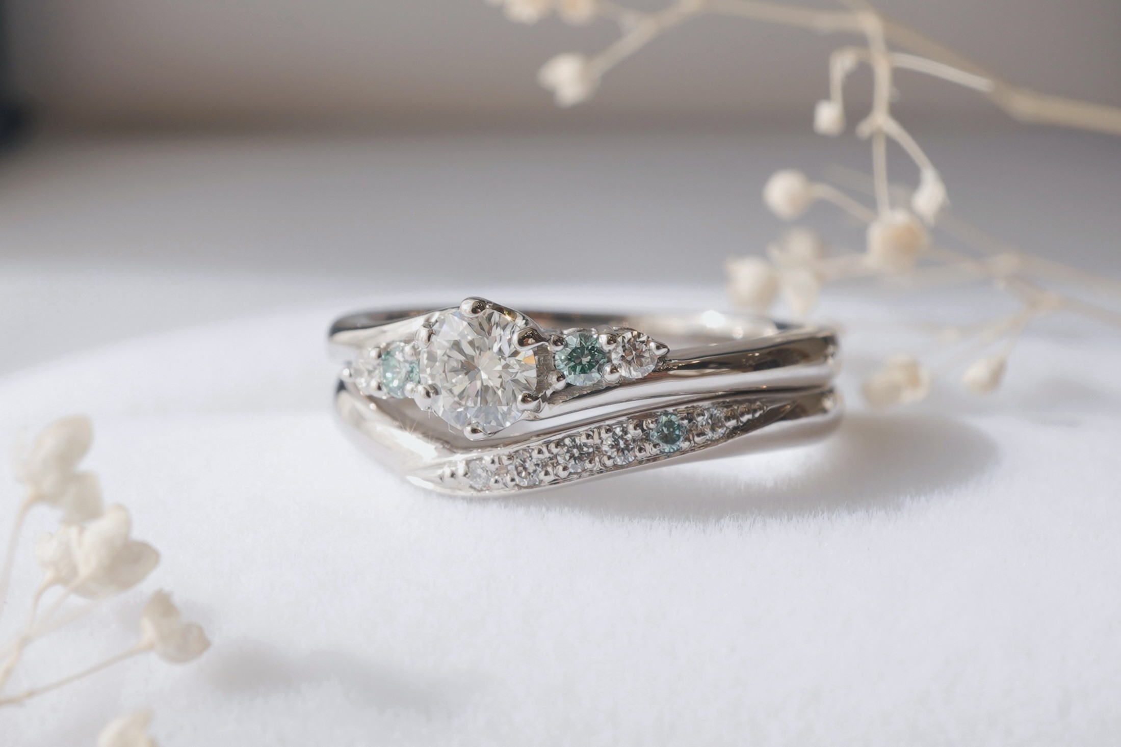 色味を合わせたこだわりのセットリング