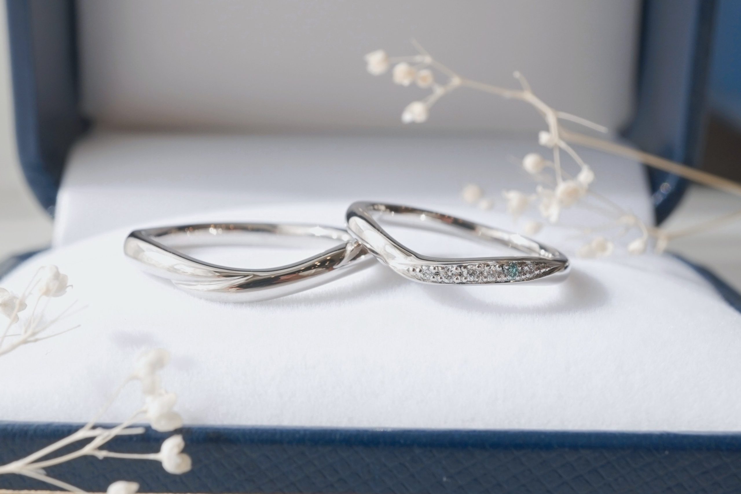 結婚指輪のデザインはおふたりともコリーヌをお選びいただきました。