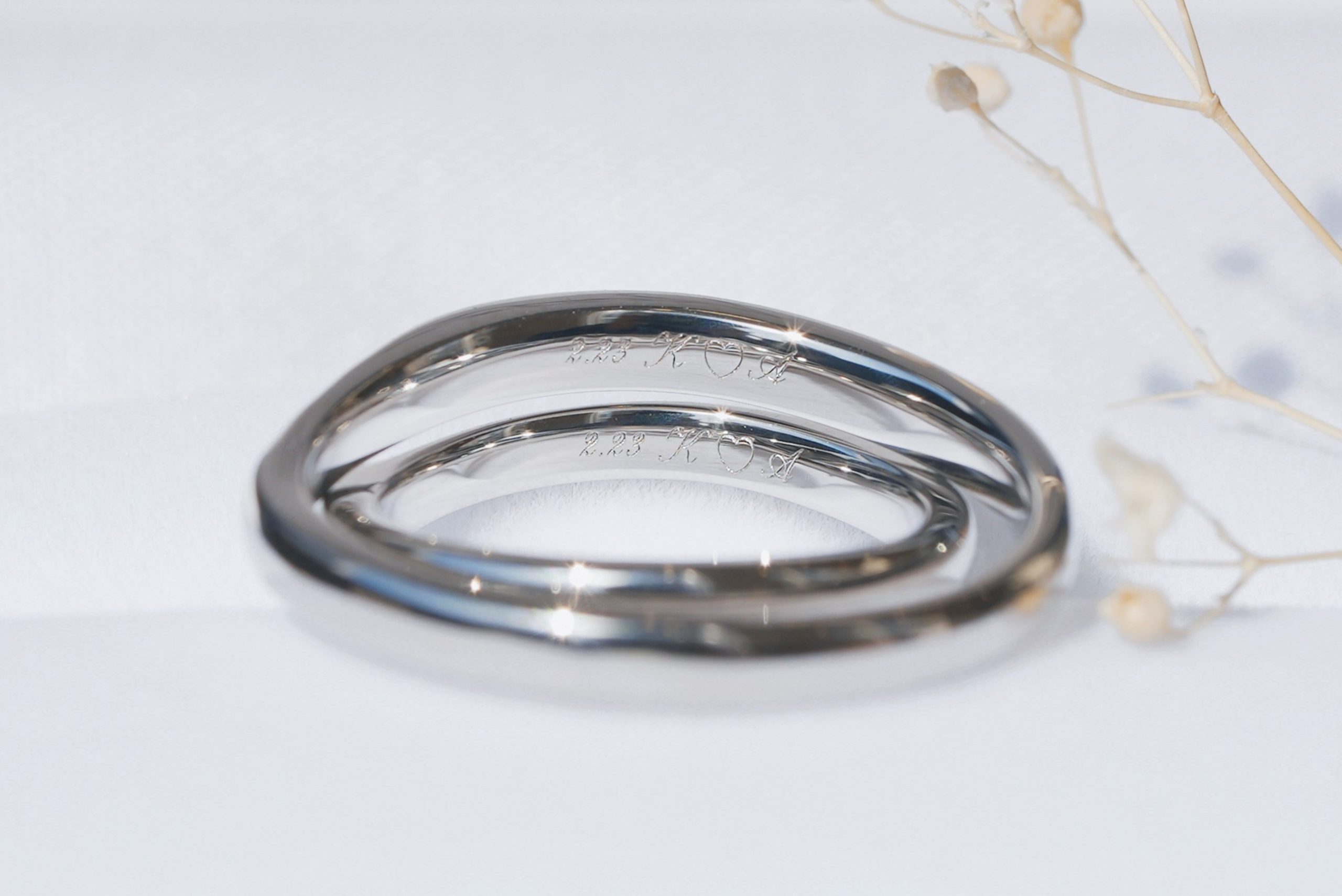 内文字には、おふたりの記念日とイニシャルがレーザーにて刻印されています。