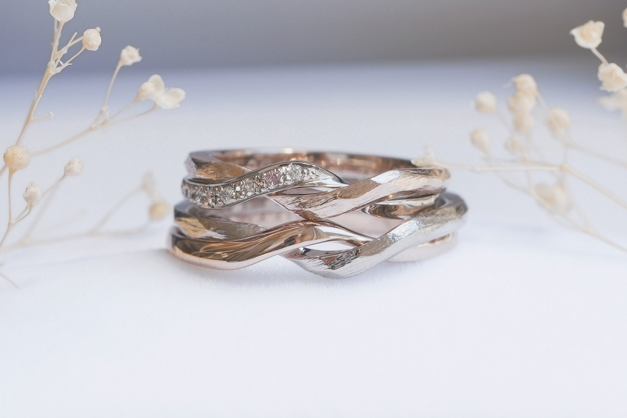 お揃いの色味にすることで統一感のある上品な指輪に仕上がりました。