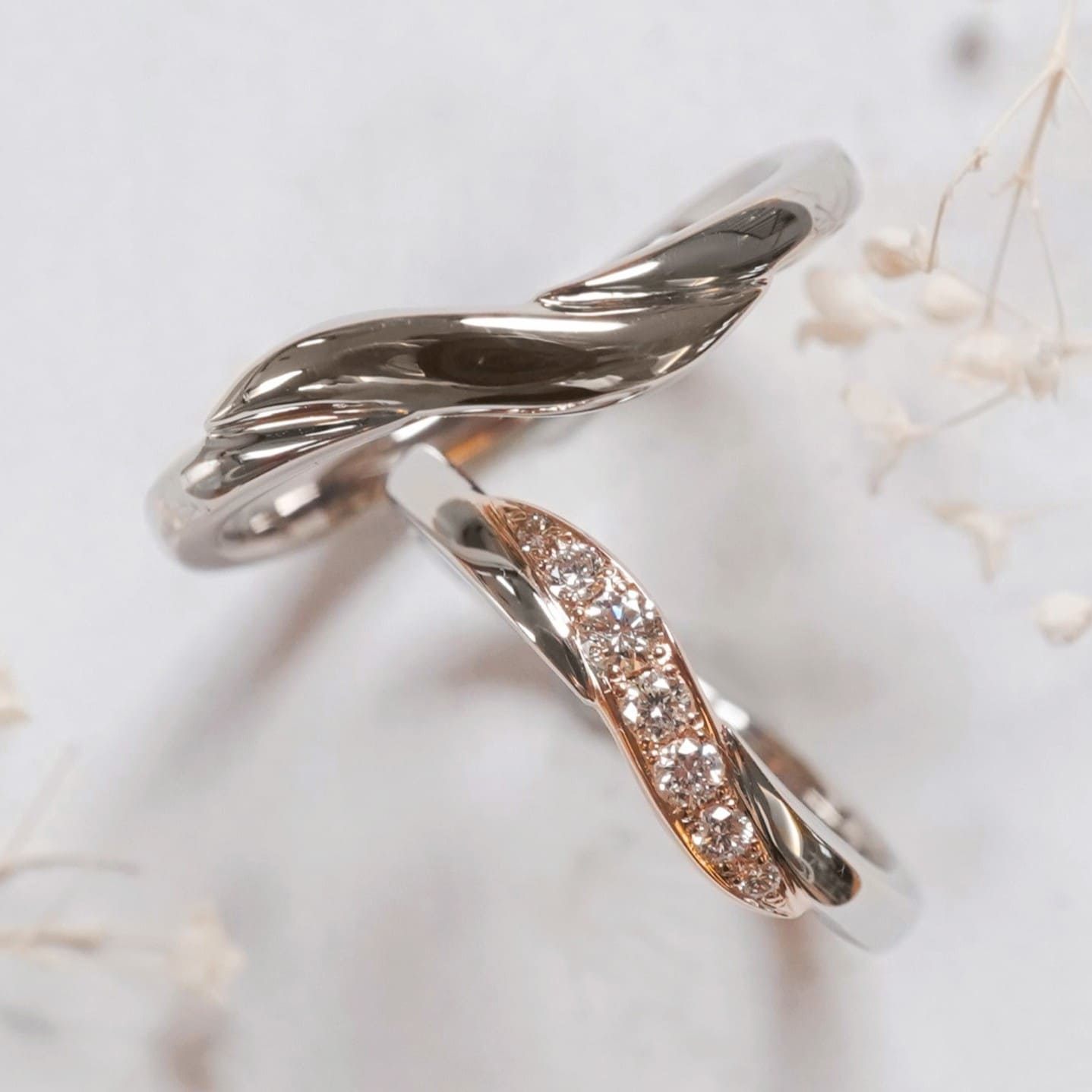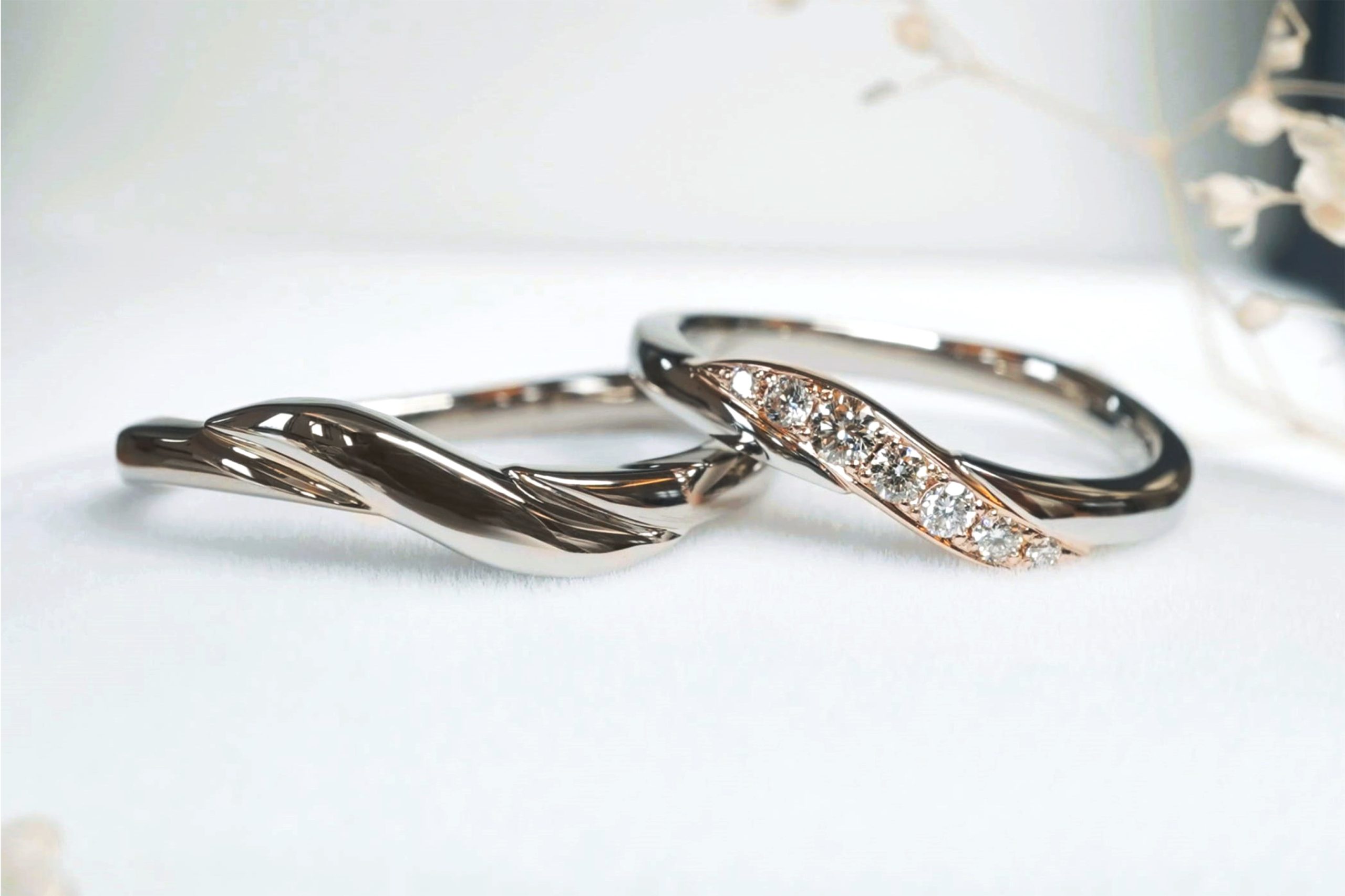 デザインはおふたりとも中央のウェーブデザインが特徴のアムールをお選びいただきました。