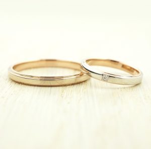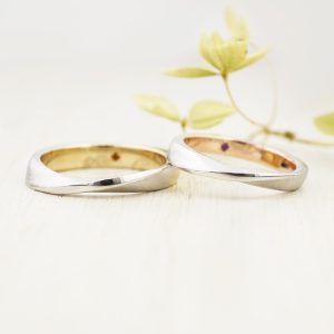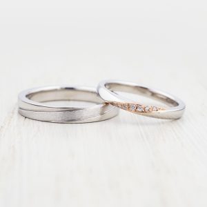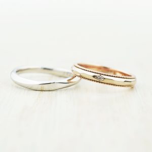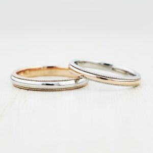プラチナとピンクゴールドの組み合わせで作製した可愛い結婚指輪