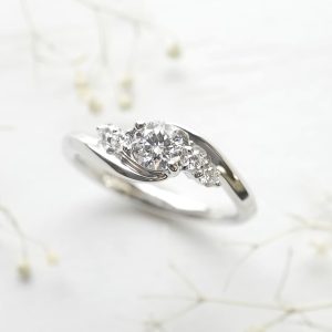 ダイヤを包み込んだデザインの婚約指輪